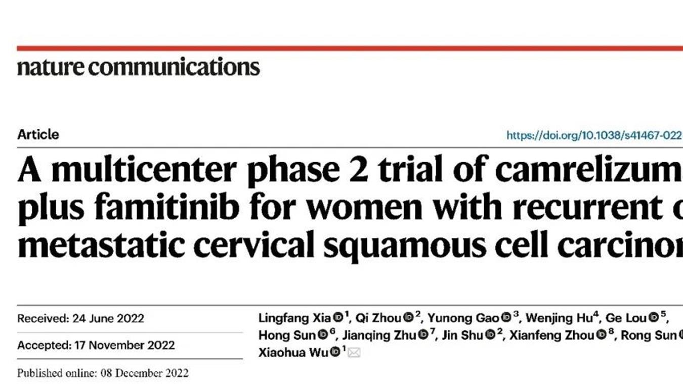 918博天娱乐旗舰创新药卡瑞利珠单抗联合法米替尼用于复发或转移性宫颈癌研究结果荣登JCO